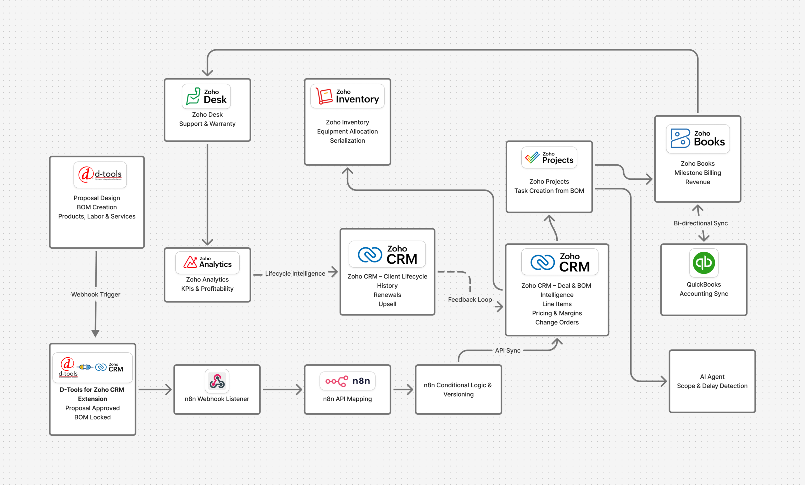 Syncing BOMs from D-Tools into Zoho CRM is not an optimization. It is a structural correction. It transforms static proposal data into a living operational backbone.